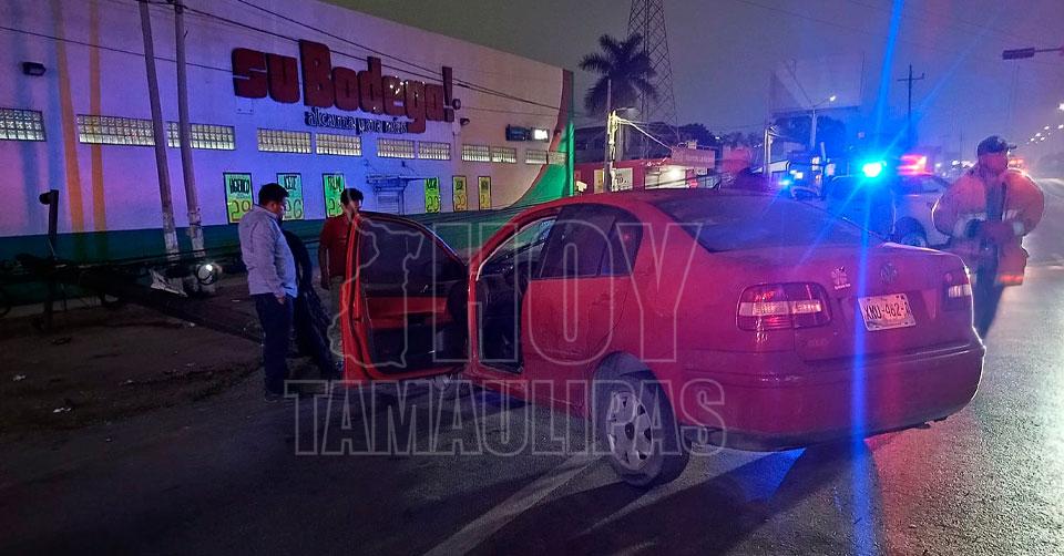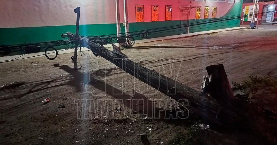 La persona se desplazaba rumbo a Tampico y por el exceso de velocidad perdió el control estrellándose contra el objeto fijo y por la inercia al ser jalado el cableado derribó a otro poste, procediendo el personal vial al aseguramiento del automóvil además de dar parte a la CFE para que inicie los trabajos de reposición y se restablezca el servicio a la brevedad.