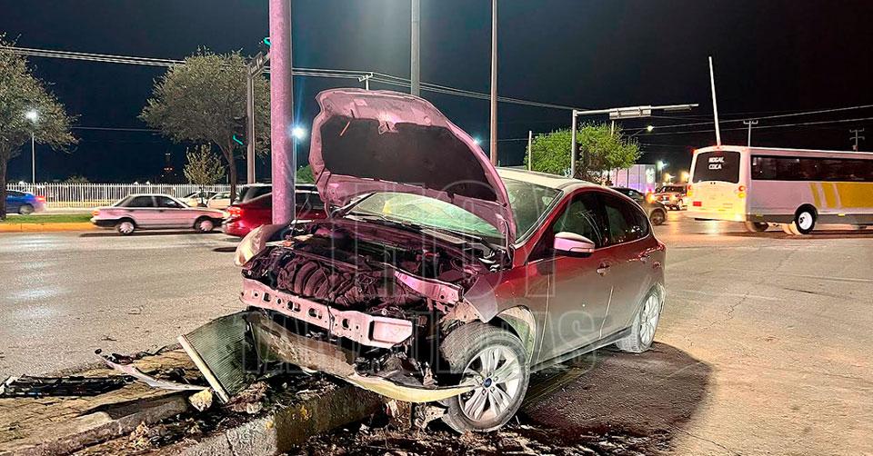 Nuevo Laredo, Tamaulipas. - Un joven de 20 años, presuntamente bajo los efectos del alcohol, protagonizó un aparatoso accidente la madrugada de este lunes en la Avenida César López de Lara en Nuevo Laredo, al estrellar su vehículo contra un poste de alumbrado público.