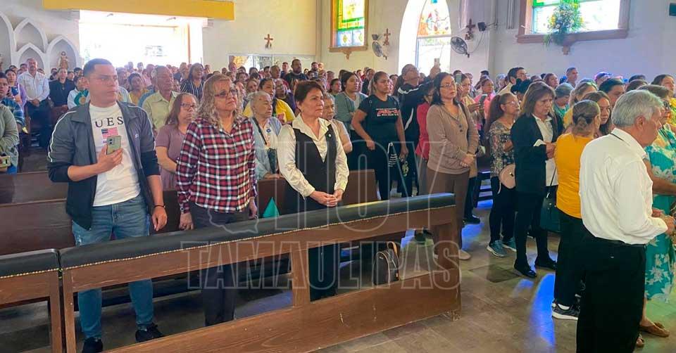 Antes de eso una comitiva esperó el vehículo que transporta las reliquias en el estacionamiento de una tienda departamental en el entronque de la carretera Victoria-Monterrey, y de ahí partieron en caravana hacia el templo enclavado en el Fraccionamiento Industrial.