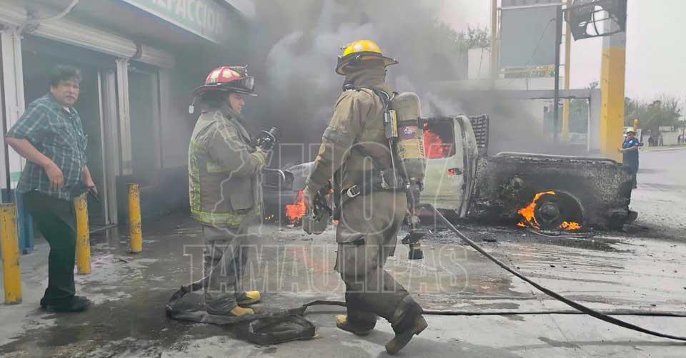 Incendio en Reynosa causa daños a camioneta y refaccionaría