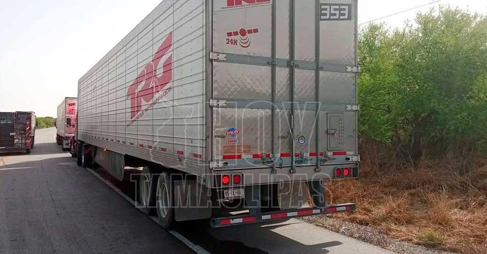 Daños materiales deja choque entre camioneta y tráiler en la Victoria-Matamoros
