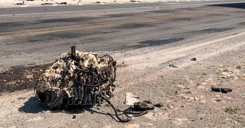 Sin embargo, en su intento fue golpeado por la pesada unidad, y en el primer impacto le arrancó el motor, arrastrándolo por varios metros hasta sacarlo de la carretera.