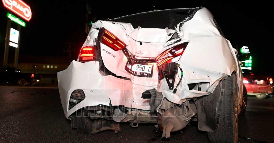 Ciudad Victoria, Tamaulipas. - Un conductor en completo estado de ebriedad protagonizó un fuerte accidente vial al pasarse la luz roja de un semáforo en Ciudad Victoria y terminó impactado contra otra unidad motriz a la que dejó convertida en chatarra; no hubo personas lesionadas.