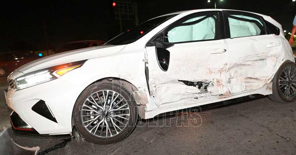 Al llegar al semáforo omitió la luz roja y se estrelló con un auto Kia Forte blanco en el que viajaban varios jóvenes que resultaron ilesos.