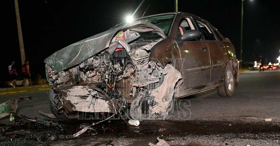 Tras el impacto con el Kia, lo proyectó contra la base de un señalamiento vial y terminó convertido en chatarra. Ambas unidades fueron remolcadas al corralón para su resguardo.