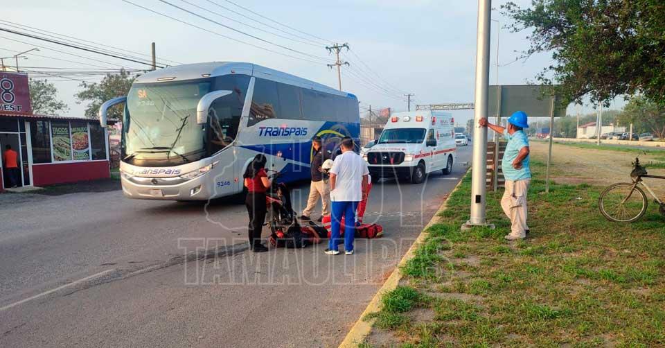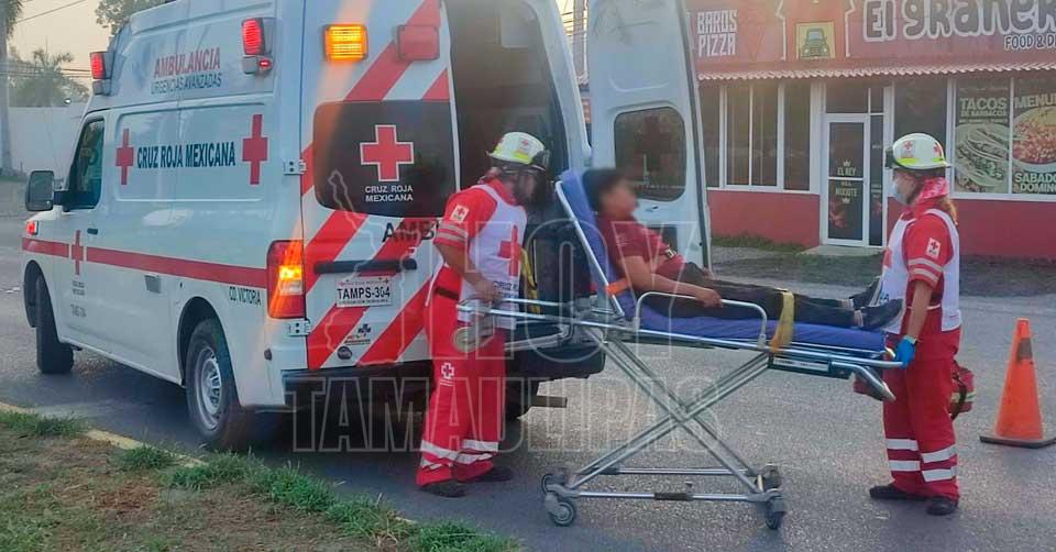 Empleada choca en su moto con ciclista en Victoria y resulta lesionada