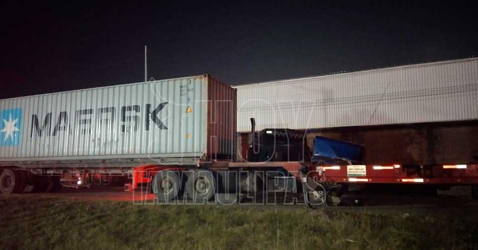 Altamira, Tamaulipas. - Con apenas 18 años, un jovencito estrelló el tráiler que conducía contra la plataforma de un vehículo de carga que se encontraba mal estacionada en oscuro sector del municipio de Altamira.