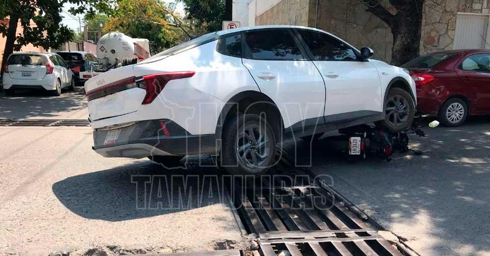 Ciudad Victoria, Tamaulipas. – Un joven motociclista vivió una experiencia de alto riesgo cuando su motocicleta fue atropellada por un automóvil, pero logró salvarse milagrosamente al saltar de la unidad antes de ser aplastado.