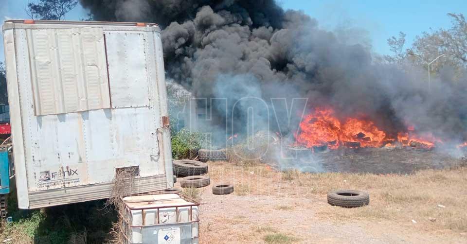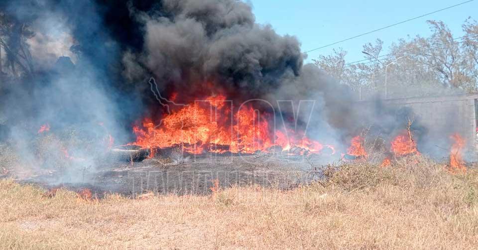Se incendian llantas junto a una vulcanizadora en Madero