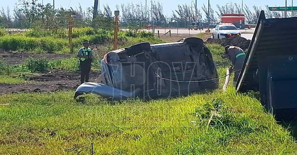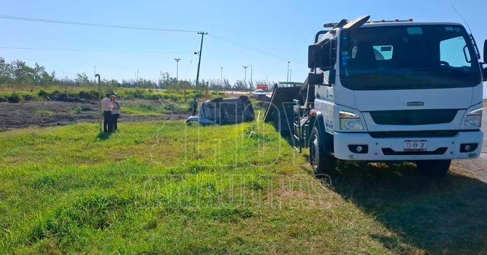 Al tomar la curva la conductora perdió el control del volante y se salió del camino, terminando el vehículo volcado sobre un costado, resultando ella misma con algunos golpes, así como su mamá y un menor que los acompañaba.