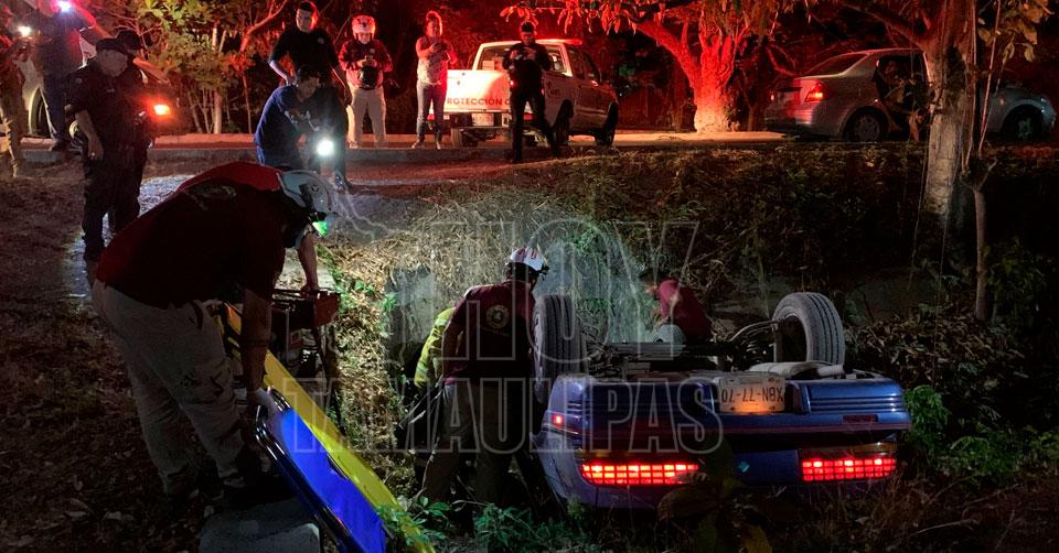 Según se informó, el lesionado tripulaba un Chevrolet Cavalier con placas de Tamaulipas de norte a sur sobre el bulevar Manuel Cavazos Lerma, pero al brincar la calle Altamira presuntamente perdió el control de la unidad para quedar al interior del dren de agua.