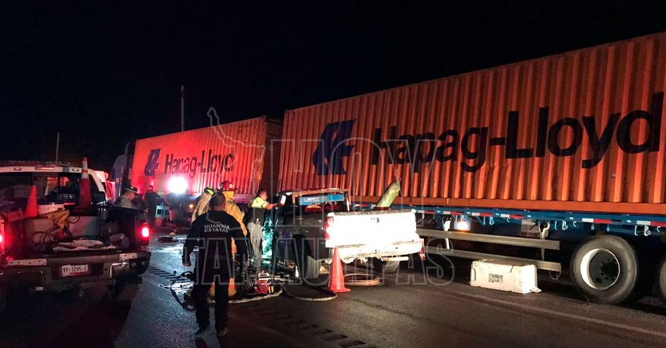 Repentinamente el conductor de la camioneta perdió el control de volante y se estrelló contra el segundo contenedor de un tráiler que se encontraba estacionado sobre el acotamiento del lado derecho.