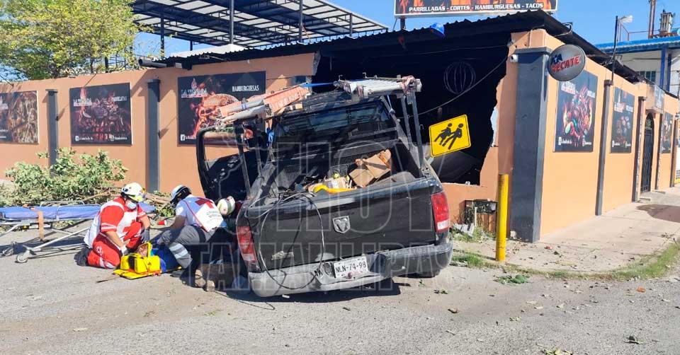 Ciudad Victoria, Tamaulipas.-Un conductor de una camioneta Pick-up resultó con varias fracturas esta mañana luego de chocar con un restauran-Bar en la Avenida Tenochtitlán.