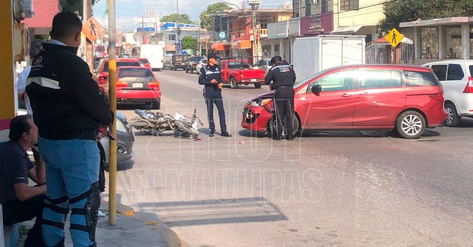 El accidente se registró la mañana de este martes, justo en la intersección que forman las calles Josefa Ortiz de Domínguez y Segunda Avenida de la colonia Laguna de la Puerta, frente a la Sub-delegación Zona Norte de Tampico.