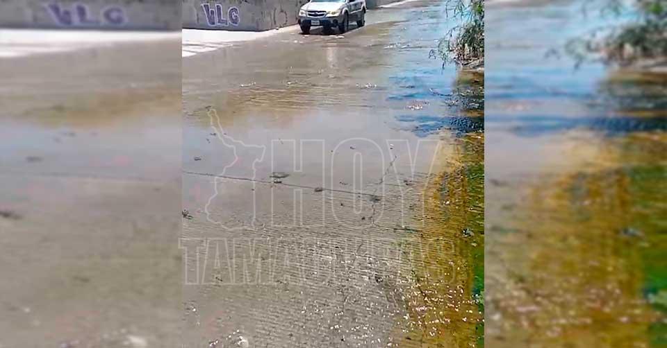 La fuga de aguas residuales da a espaldas del Hospital Materno Infantil y abarca una de las principales avenidas de ingreso a la colonia.