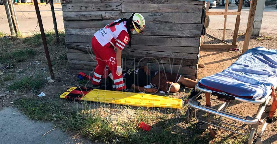 Paramédicos de la Cruz Roja acudieron al lugar para brindarle los primeros auxilios al joven, quien perdió el conocimiento mientras era atendido por un golpe en la cabeza, por lo que fue trasladado de inmediato al Hospital Civil.