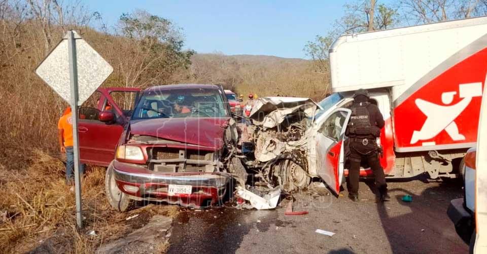 El accidente ocurrió a la altura del kilómetro 01 de la citada vía, específicamente frente al Ejido La Muralla, y en él se vieron involucrados tres vehículos: una camioneta Ford Lobo color guinda, un automóvil blanco y una camioneta de la empresa de mensajería Inbox.
