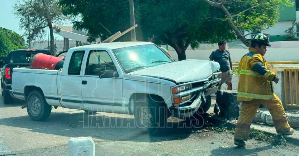 De acuerdo al reporte de las autoridades, una camioneta Chevrolet de cabina y media color blanco con placas de Tamaulipas de modelo atrasado, circulaba por la Avenida Monterrey rumbo al norte, cuando aparentemente el conductor perdió el control por el exceso de velocidad con que se desplazaba y se proyectó contra la base de concreto.