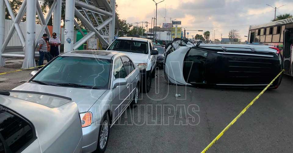 Choque en cadena dejó volcadura y cinco vehículos dañados en Tampico