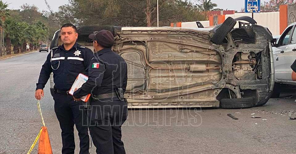 El aparatoso percance donde no se reportaron heridos de consideración, ocurrió la tarde de este martes sobre el Bulevar Adolfo López Mateos, a la altura del acceso a la Universidad Autónoma de Tamaulipas (UAT) campus Tampico-Madero.