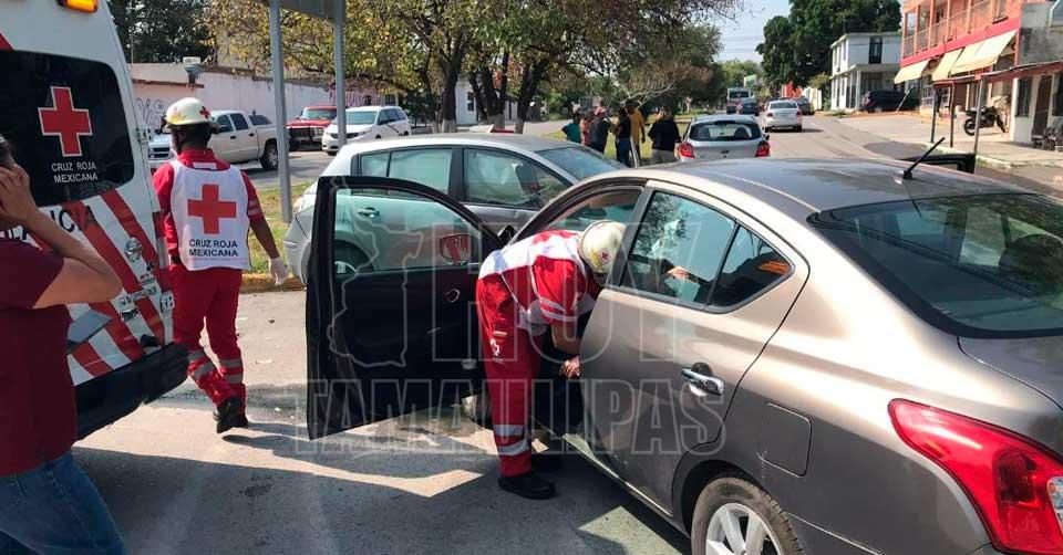 Ciudad Victoria, Tamaulipas. – Un choque entre dos automóviles de la marca Versa dejó como saldo a dos mujeres lesionadas y cuantiosos daños materiales en el cruce de la calle 28 con Berriozábal en Ciudad Victoria.