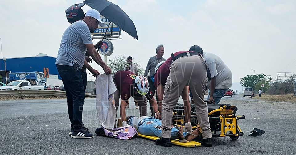 La joven, que conducía una motocicleta Italika Z150 azul con negro, quedó inconsciente tras salir proyectada al pavimento. Fue trasladada en estado grave al Hospital General por paramédicos que acudieron al lugar.