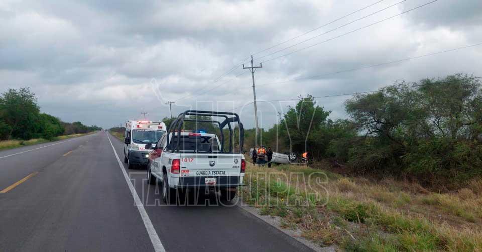 San Fernando, Tamaulipas. - El exceso de velocidad, combinado con una falla mecánica, fueron las causas de la volcadura de un carro Dodge gris que era conducido por Esmeralda G, de 39 años de edad y con domicilio de Reynosa, quien perdió la vida por las lesiones que sufrió en el accidente en San Fernando.
