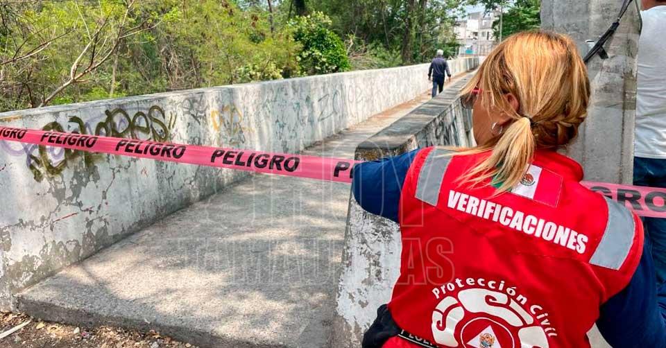 Ciudad Victoria, Tamaulipas. – La Coordinación de Protección Civil Victoria, a través de su área de Verificaciones, emitió una alerta a la ciudadanía sobre el riesgo de colapso de una parte del puente peatonal ubicado a la altura del 13 Boulevard Praxedis Balboa.