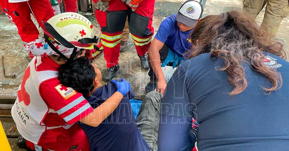 Rescatistas de la Cruz Roja y Bomberos de Protección Civil llegaron al lugar para llevar a cabo las maniobras de rescate. Durante más de 30 minutos, los equipos de emergencia utilizaron equipo hidráulico para liberar al joven, quien mostraba signos de dolor y sufría una lesión grave en su pierna izquierda.