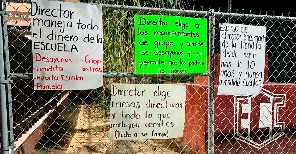 "Estamos inconformes por los abusos de autoridad del director. Él hace mal manejo de recursos que llegan a la escuela, tiene gente trabajando dentro de la escuela que no pertenece a la secretaría y se escuda en que puede hacer todo lo que quiere porque tiene amigos o personal en la secretaría que no le pueden hacer nada", declaró uno de los padres de familia.
