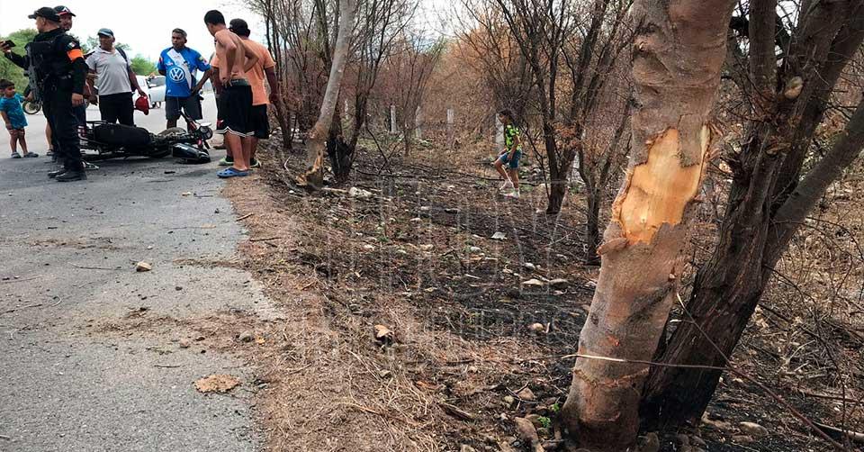 Dos jóvenes lesionados tras chocar contra árbol en motocicleta en carretera a Alianza de Caballeros