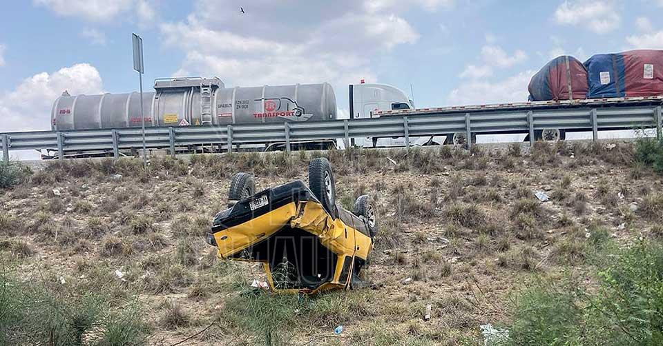 Nuevo Laredo, Tamaulipas.- Tres mujeres lesionadas y un hombre ileso, fue el saldo que dejó una volcadura de camioneta registrada en la Carretera Nuevo Laredo-Monterrey.