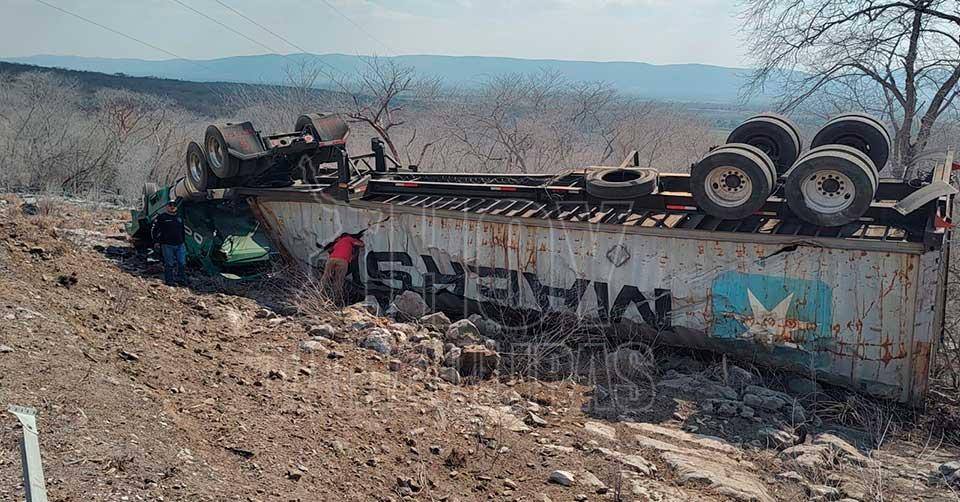 Chofer de tráiler 'vive de milagro' tras volcar en la carretera Mante-Valles