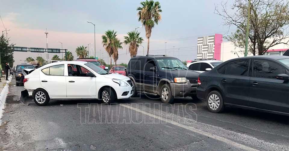 Ciudad Victoria, Tamaulipas. – Un aparatoso accidente vial se registró sobre la carretera Victoria-Monterrey, a la altura de la tienda Liverpool, luego de que un conductor presuntamente en estado de ebriedad provocó una carambola en la que se vieron involucrados al menos cuatro vehículos.