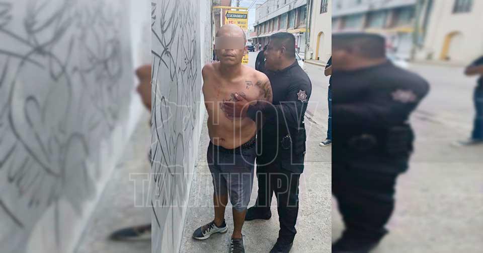 Los hechos ocurrieron en la calle Morelos, entre las calles siete y ocho, donde el sujeto fue sorprendido en flagrancia por un periodista que dio aviso a las autoridades.