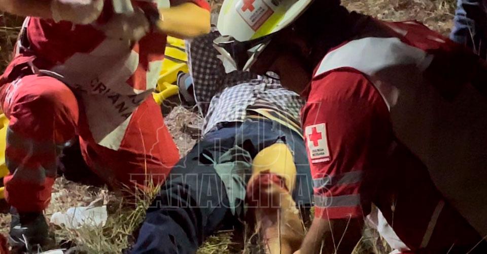 Altamira, Tamaulipas. - Con heridas de gravedad, entre ellas una aparente fractura expuesta en su pierna izquierda, resultó un motociclista cuando al desplazarse sobre el Libramiento Poniente de Altamira se desorientó y terminó saliéndose del camino.