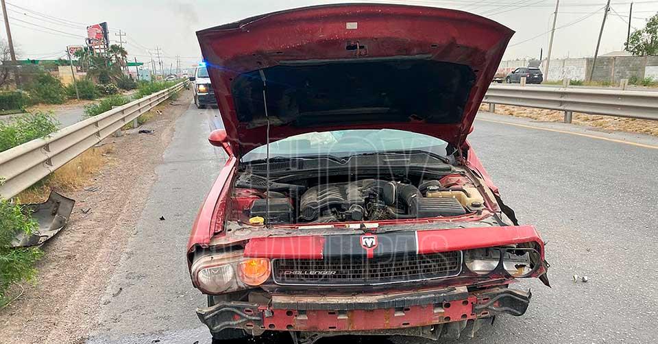 La mujer circulaba de norte a sur por la Carretera a Piedras Negras y a la altura de la calle Cristóbal Valdez, giró a la izquierda e invadió el carril por donde iba un Dodge Challenger y causó la colisión.