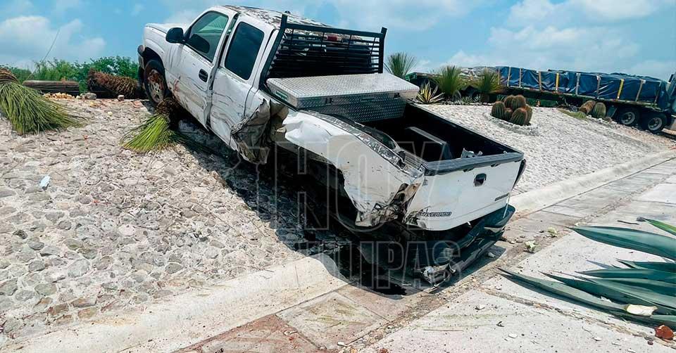 Matamoros, Tamaulipas. - Un aparatoso accidente se registró sobre la carretera Matamoros-Reynosa, a la altura del kilómetro 21, frente al Hotel Hacienda Los Diamantes, cuando una camioneta se incorporó sin precaución a la vía, provocando el choque contra un tráiler.