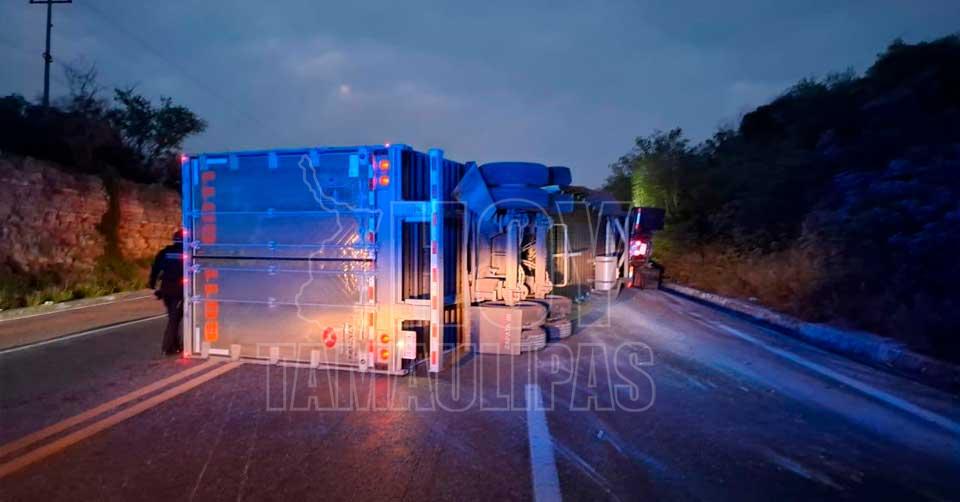 Volcadura de tráiler afectó el tránsito en la Victoria-Matamoros
