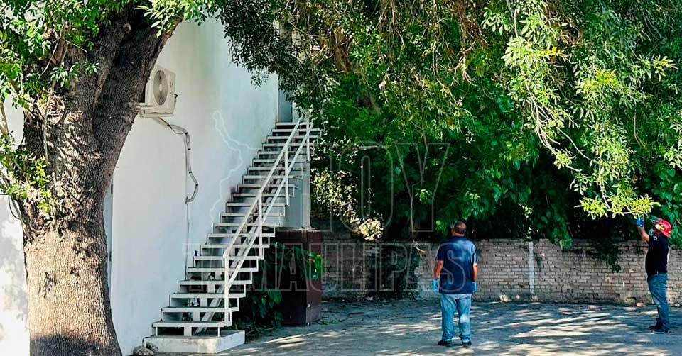 Matamoros, Tamaulipas. - Elementos de la Fiscalía General de Justicia realizaron el levantamiento del cuerpo de un hombre que fue encontrado sin vida, en avanzado estado de descomposición, en la azotea de las oficinas de Farmacias del Ahorro, ubicadas en el cruce de la calle 7 y Avenida Iturbide, en la Zona Centro de Matamoros.