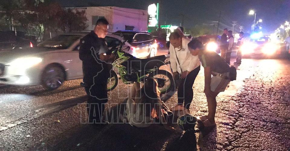 Motociclista se estrella contra auto por retén sin señalizar en Ciudad Victoria