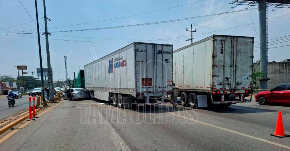 Acelerado trailero se vio involucrado en choque múltiple en Altamira
