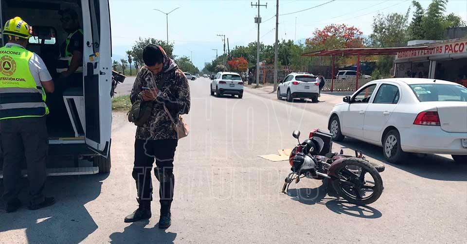 Ciudad Victoria, Tamaulipas.- Una pareja de motociclistas resultó lesionada, luego de ser impactada por un vehículo cuyo conductor se dio a la fuga tras el accidente.