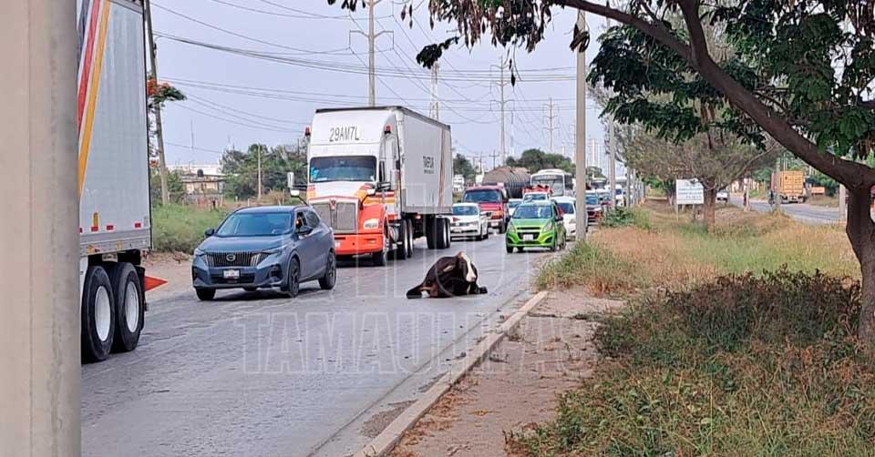 Altamira, Tamaulipas. - Cuatro personas que viajaban en un vehículo habilitado como taxi resultaron lesionadas, al impactarse la unidad contra una vaca que andaba suelta y se atravesó de manera repentina.
