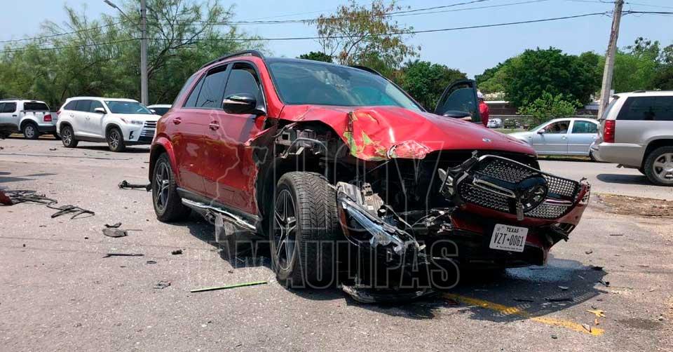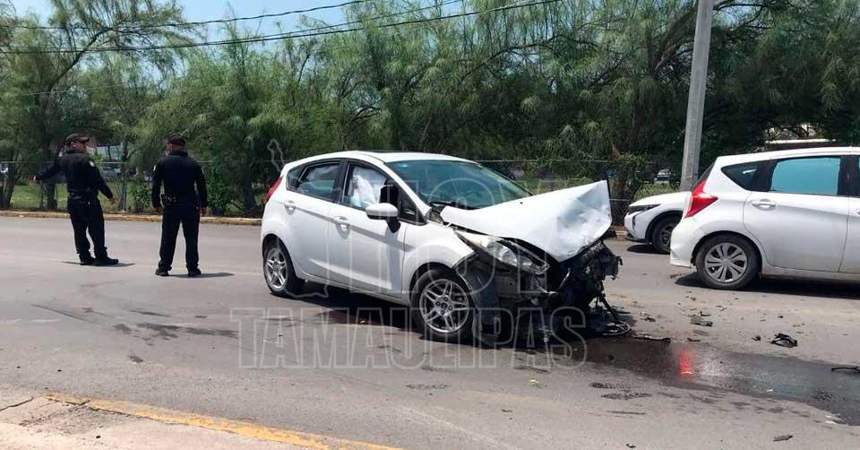 Ciudad Victoria, Tamaulipas. - Un fuerte accidente vehicular se registró en la Avenida del Valle, luego de que un automóvil y una camioneta chocaron, provocando que esta última se impactara contra un food truck.