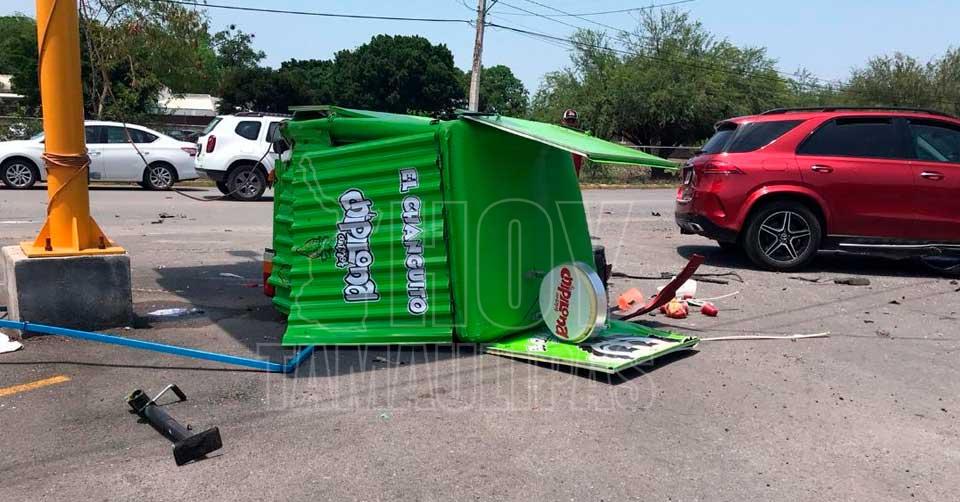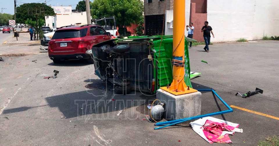 Aparatoso choque deja destrozado un food truck en Ciudad Victoria