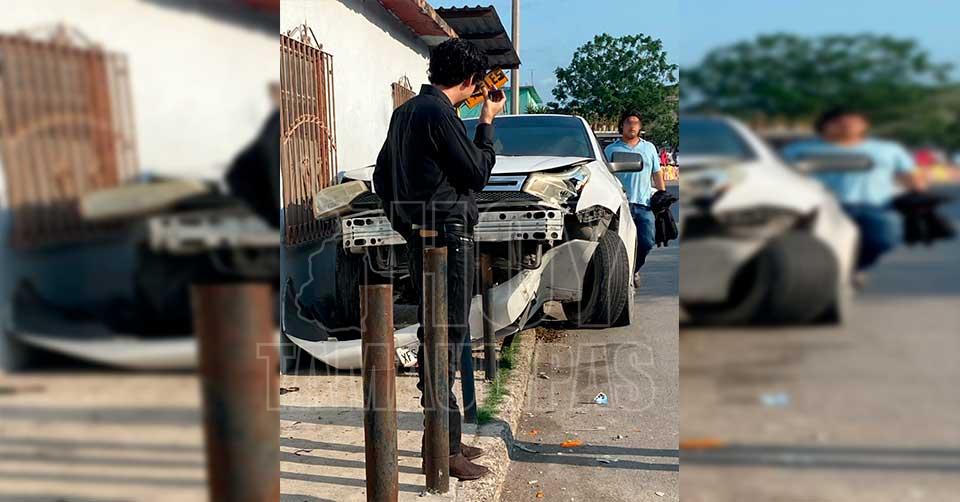 Matamoros, Tamaulipas. - Un aparatoso accidente automovilístico protagonizó el joven Adrián de Jesús, residente del Fraccionamiento Misiones Dos, cuando se dirigía al velorio de su abuelo.