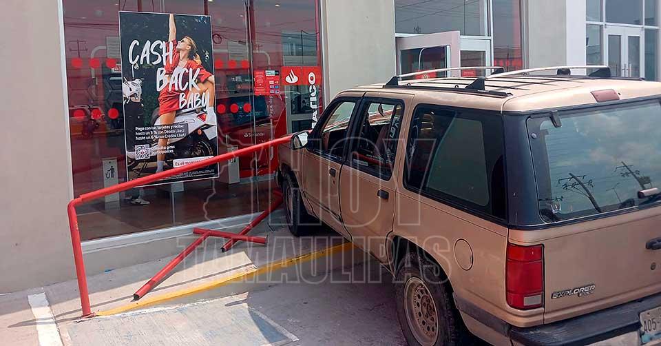 Nuevo Laredo, Tamaulipas. — Una camioneta impactó la fachada de una sucursal bancaria, luego de que, según la versión del conductor, el sistema de frenado le falló al intentar ingresar al estacionamiento en Nuevo Laredo.
