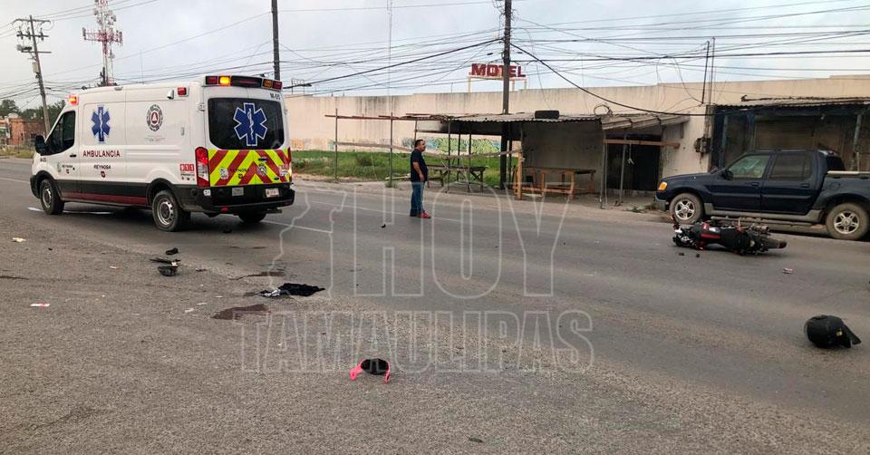 Reynosa, Tamaulipas. – Una pareja que viajaba a bordo de una motocicleta resultó con lesiones de gravedad tras impactarse contra una camioneta la mañana de este sábado en el Bulevar Morelos, a la altura del retorno frente a la colonia El Anhelo en Reynosa.