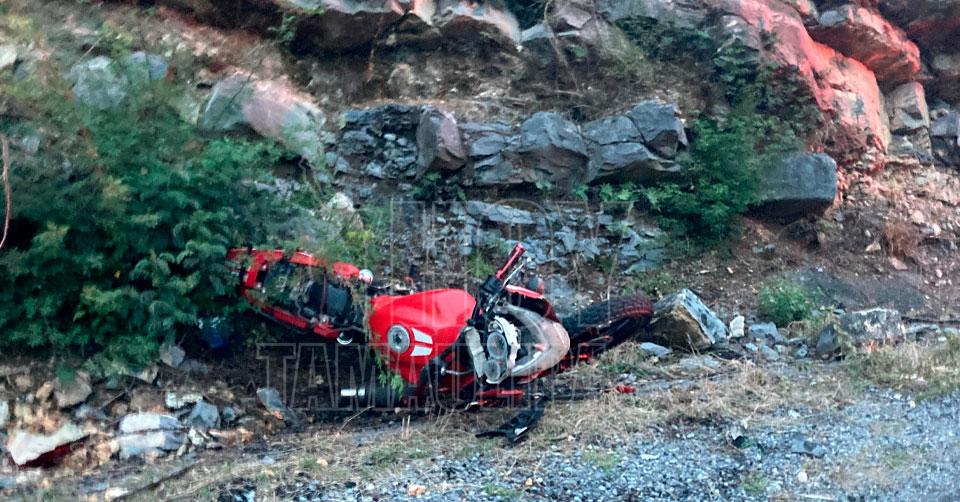 Al llegar a la curva del kilómetro 161, el conductor de la motocicleta invadió el carril contrario y se estrelló de frente contra un automóvil Nissan Sentra en el que viajaba una familia con destino a Jaumave.